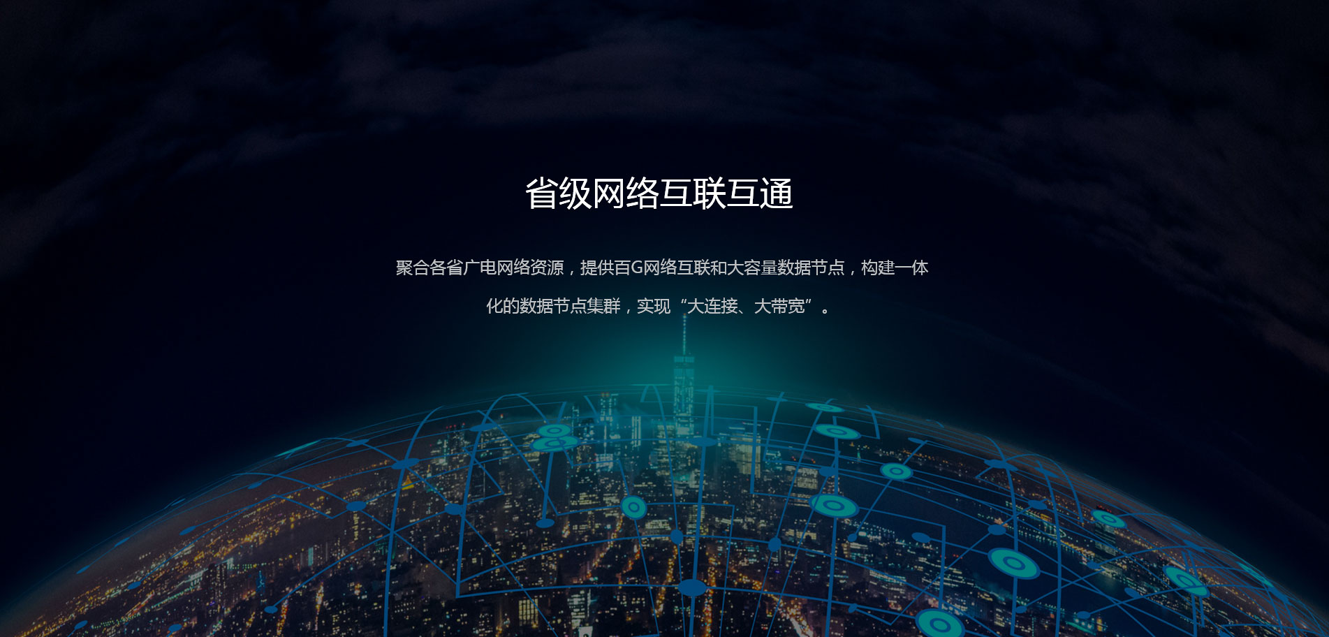 聚合各省廣電網絡資源,提供百G網絡互聯(lián),構建全國性省際網絡互聯(lián)互通與數據節(jié)點等基礎服務;基于大連接與大數據融合的業(yè)務模式,提供廣電特色的數據技術服務。